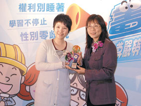 首獎金彩獎得主、二十四歲的林怡君,是在高雄服志願役的女兵,以現代花木蘭的身分,畫出「兩性平權│人人都是台灣之光」的四格漫畫,巧妙將自己的生涯抉擇融入畫中,畫中主角是愛刺繡的男子東方不敗,和一心只想報名志願役的女生,這兩人在古代是有志難伸,但在二十一世紀性別平權時代,一個如願開了「不敗繡花店」一展長才,一個則成為深受愛戴的女軍官,兩造對比,突顯出兩性平權的主軸。
