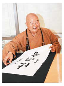 圖說:遠見雜誌昨天專訪星雲大師,談論「覺有情」墨跡巡迴展,並請大師提筆,大師有求必應地寫下「法同舍」,寓意以佛法為家,安住身心。記者邱麗玥攝