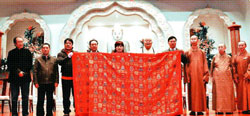 隨後,在僧眾們唱誦「六塵供」梵唄聲中,代表雲錦的金袈裟由王寶林所長及張玉英館長贈送給大師,希望藉由這件金袈裟的贈送,串起兩岸人民對佛陀最崇高的敬意。