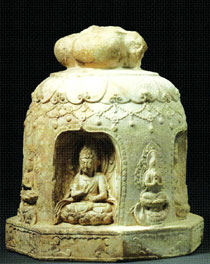 〈漢白玉浮屠〉寬12.7、高38.5公分,1997年長安區郭杜鎮香積寺出土。