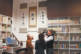隨後,覺芸法師在圖書館介紹佛光山開山宗長星雲大師「一筆字」的起源與妙處,也特別解說「三好四給」、「三好之家」與「行佛」的內涵;當時,三樓禪堂義工正為觀音菩薩上金身,因此CNN採訪小組立刻捕捉這殊勝的畫面,並訪問國際佛光會督導黃堅,以便瞭解「上金」意義為何?及做法、時間等細節,此外,覺芸法師也為採訪小組示範佛教禮佛的方式。