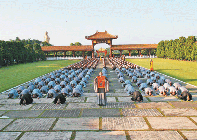 【人間社記者妙晏、妙南、心律大樹報導】為慶祝佛光山開山四十周年,在各界護法信徒大力倡導下,到佛光山朝山禮佛修持活動已蔚為風潮。二十二、二十三清晨,不二門廣場聚集近三千位朝禮聖地的僧信二眾弟子。