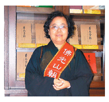 【人間社記者覺全大樹報導】住在高雄的林玲容,經由同事的引介而認識佛教,當時只是隨喜的心態參加道場活動,並未信仰佛教,直到民國八十四年加入國際佛光會旗山分會後,在假日經常帶全家大小到佛光山禮佛,才真正與佛結緣。林玲容興奮的說:「每次到佛光山就像回到家一樣,我最喜歡將星雲大師的著作請回家,有空閒時常常翻閱、細讀大師的著作,很感謝大師給了我做人處世上的一盞智慧明燈」。