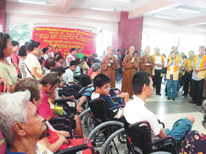 所有受贈的殘疾人士推出滿臉燦爛的笑容,滿懷感激,在親人及佛光人的協助下,揮手道謝離去。殘疾人士的滿意,讓佛光人感受到施比受還快樂,只要付出一點點的愛心與布施,就能幫助苦難的同胞離苦得樂,何樂而不為!
