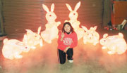 花燈達人黃敏芳融入佛光山春節平安燈會主題譗巧智慧心豃,創作出一隻隻形態多樣化的兔子花燈。圖/黃敏芳提供