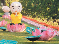 不只如此,在佛光山向來惜福愛物的環保理念下,黃敏芳更巧妙幫去年的虎年花燈「改頭換面」,請高雄、屏東等地的監獄受刑人一起幫忙替舊燈修製裱布,打造出煥然一新的蓮花燈與沙彌燈。