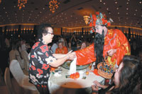 大馬佛光人舉辦巧智慧心新春大團圓慈善齋宴,財神爺也到現場送大吉大利給老人。圖/人間社記者陳勇勤
