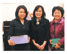 圖說:就讀中天學校十四年畢業的范心妤(左),與母親(右)、田中光處長夫人(中)合影。人間社記者吳秀華攝