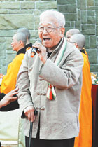 名作詞家莊奴在會場高歌〈佛光山故事〉,九十歲的他仍舊中氣十足。圖/人間社記者陳碧雲