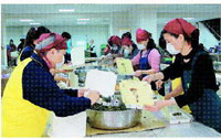 在福慧家園三好樓的地下二樓,春節期間由女眾禪學堂輔導老師滿欣法師及禪學僧,帶領國際佛光會小港各分會每天三十人輪值,外加其他分會約五十位義工,分典座、洗菜、切菜、聯絡、包裝、運送等組別,每天從清晨六點開始各司其職,每天做出近四千份健康可口的便當,服務全山大眾、義工。