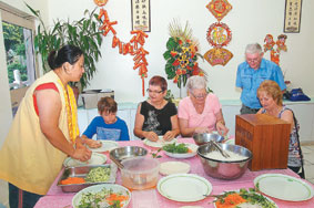 六日舉辦「敦親睦鄰文化日」活動,住持覺善法師、及國際佛光會昆士蘭協會長盧姝錦等人,精心策畫了二十三個精采節目,邀請附近鄰居及社會民眾來寺聯誼,加深寺院與社區民眾的感情。(圖/人間社記者吳秀華)