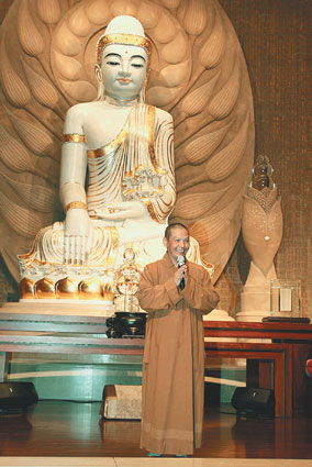 佛光山都監院院長慧傳法師代表佛光山致詞,感謝理事長淨明法師在南屏別院舉行佛教界新春團拜,也感謝市長在除夕夜特別到佛光山敲平安鐘,為市民祈願,祈求一年平安、吉祥;更感謝諸山長老對佛陀紀念館的支持,使得逾千家寺院結集萬緣,共同興建佛陀紀念館,因此各寺院功德芳名都刻在功德碑牆上,表達謝忱。