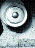師傅接著替我們示範製鑼的過程,先用特製圓規將鑼臍標好位置,再放上模子敲打出形狀及深度,之後才拿起鐵鎚在臍周敲打出深淺不一的凹洞,用以調整鑼的音色,師傅邊打邊聽,直到打出好聽的音色才停手。鑼的大小、厚薄、深淺都會影響發出的音調,但每一塊銅打出的鑼聲都不同,通常買家並不會刻意挑選鑼的音調,但會十分重視鑼的音色,而一面鑼能表現出多完美的音色,完全要靠師傅個人的修為。