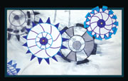 日常生活中常見的時鐘、風車、腳踏車等機械類物品,裡頭都有齒輪的存在喔!這次我們要運用點、線、面的基本概念,來設計各種不同造型的齒輪,再利用彩色筆水性的特性,做出渲染的效果,不要覺得彩色筆是小小孩的專利,只要加上一些水,也可以做出水彩渲染的效果呢!