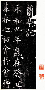 一九九二年天津大學出版社出版〈歐陽詢楷書蘭亭記〉由田蘊章編輯,之後引起許多回響;其實日本清雅堂早於一九六三年就已經出版(如附圖)。