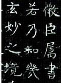 虞氏似乎有一股強大的意志,運用此碑將楷法統攝起來,摒除六朝零散的風格。所以此碑用筆簡靜圓潤,筆勢舒展,字形稍狹長以顯其秀麗,一派清和氣象。