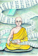 鳩摩羅什(西元三四四│四一三),原籍天竺,父親鳩摩羅炎,母親是龜茲國公主,自幼被譽為天才神童,七歲隨母親一同出家,曾遊歷天竺,遍參名宿,因博聞強記,很快貫通大小乘,二十歲便陸續受到罽賓、龜茲、沙勒國王爭相以上賓之禮延聘升座說法,聲譽揚名西域各國。