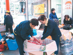 現場由吳淑貞和數十名佛光人負責裝箱打包,服裝店老板娘洪太太除了號召左鄰右舍捐衣外,還穿梭在工作人員中,指導打包技巧,務求每個送往災區的紙箱都綑綁結實牢固。里長陳永昌表示,「幫助別人比被人幫助更有福報,不但能積功德,也能讓大家平安」。