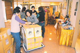 昨天隨即召集義工到道場打包、裝箱,並寄往「自民黨本部東日本巨大地震被災者救援物資對策小組」,希望這些物資能盡快送到災民手中,讓東北地區風雪中的受難者增添一絲溫暖。