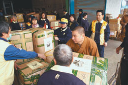 同一時間,有另一組佛光人正在打包一千組睡墊,亦於昨日下午送抵蘆竹;搬運途中,不時有熱心民眾陸續送來奶粉、睡袋、棉被、禦寒外套等物資,眼見日本氣溫又再下降,更有人提供以媒油為能源的暖爐,盼能及時減低災民寒害之苦,大家期望能盡一己之力,幫日本災區民眾解決急難之苦。