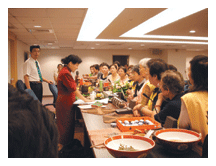 在「動中禪」中,團康指導老師王木義以「因為有你」、三好運動帶動唱,活絡整個現場氣氛,讓平常少於活動筋骨的長者動起來。茶禪一味是由中華國際無我茶協會輔導理事長陳寶,教授如何泡一壺好茶?茶之養生與歷史故事中,以「早茶一盅,一日威風;午茶一盅,勞動輕鬆;晚茶一盅,提神去痛;一日三盅,雷打不動」的喝茶觀念告訴學員,現場並指導泡茶方法,讓學員輕鬆喝茶。佛教故事是由妙演法師為大家介紹佛陀的十大弟子,認識佛教長者。健康講座則邀請聖心聯合診所負責人黃寶凱醫師,講說如何預防糖尿病、糖尿病的由來、如何與病痛相處等,大家發言踴躍,表現出對保健知識的求知欲。
