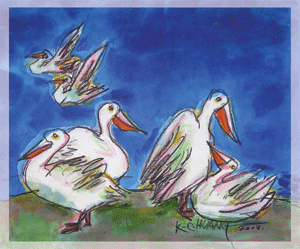 鵜鶘鳥身軀龐大勝過大天鵝數倍,模樣之可愛惹人喜歡。全身白色羽毛,繁殖期過後變為淡紅色更顯艷麗。