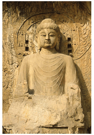 我的精神頓時就振作起來,像一陣陣奔騰呼嘯的波濤,激烈地衝撞著自己的心弦。我曾瞧見過多少雕像,這肯定是最完美的一座。儘管盧舍那大佛這個名字,似乎顯得點兒陌生,這五丈多高的魁偉身軀,也好像是過於龐大了些,然而這莊嚴卻又溫柔的面容,這寬宏而又睿智的神情,對於我來說實在是太熟悉了,曾在多少回的夢幻和想像中瞧見過。這座冠以佛名的雕像,其實是在盡情地謳歌著人的完美與善良。