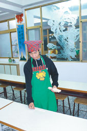 餐前,擦拭桌面,給用餐的人乾淨的環境,來來回回地擺妥碗、筷,為所有人盛飯添菜,「給」人吃得歡喜;餐後,收拾碗筷、擦拭桌面、拖地、排列桌椅,恢復齋堂原有的整潔。雖然從小就常常輪到這項工作,但這次的身分不同,感受到的自然是更大的責任感、成就感。