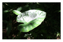 還記得日本宮崎駿的「龍貓」卡通嗎?電影裡有一幕是龍貓和小女孩拿著一片大大的葉子當作雨傘在遮雨,今天書子姐姐就來介紹這種大大葉子的植物,它的名字叫做「姑婆芋」。