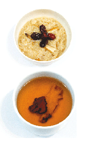 4.將做法1、2、3放入鍋中,並加上少許砂糖和三百五十CC的水,煮至米開湯稠,即可食用。