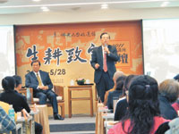 台北道場「生耕致富專題講座—親子教育論壇」,一天五場次的精闢演說,讓聽眾熱烈詢問教育問題,講座欲罷不能。當天尚有白曉燕文教基金會執行長陳麗珍、杜耳學習發展中心執行長邱耀德、耕莘文教基金會執行長曲慶浩、研揚文教基金會執行長楊煥晨、技嘉教育基金會副執行長周麗華等貴賓與會。