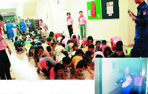 對於逼真的演習,現場有數名孩子心有餘悸地說:「我害怕死亡,所以不要參與演習了。」還好經過多番講解逃生技巧的重要性後,大家鼓起勇氣參與第二輪的防火演習,以伏地爬行的辦法逃離「火災現場」,以減少吸入過多的廢氣。