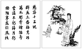 〈慈容十三現〉版畫、偈語與善財童子尋訪善見比丘無關。版畫的觀音菩薩雙腳赤足,手持一花籃,站立於枯木前,沒有寶冠纓絡嚴飾;童子側立,雙手合十,全圖以「孺慕之思」為主要表現。