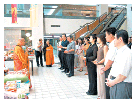 灑淨佛供後,定和尚祝福大家生意興隆,天天快樂、天天歡喜、天天發財,並贈六字大明咒銅牌及和尚念佛機。廠商負責人對佛光山法師慈悲祈福灑淨非常歡喜。