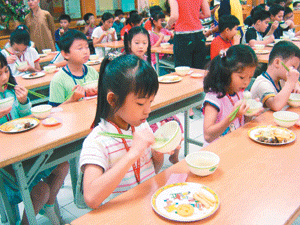 圖說:參加生活禪修的孩子,用餐時安詳又有威儀。人間社記者平曜攝