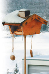 公公說每一年的冬天,在德國冷冽的氣候下,不管是會長留在德國的鳥,或是準備飛往溫暖南方的鳥類,要在零下十幾、二十度的低溫下找到食物是相當困難的一件事,所以鳥屋裡放了糧食,目的就是希望那些飛越過境的鳥兒們,能進來鳥屋內補給一下糧食,填飽肚子了才能在這冷冷的冬天存活下去。