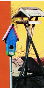 說到鳥屋的類型,就我了解,大致可分兩種,一種是開放式的,這種鳥屋主要以提供鳥兒進食為目的,另外一種為密閉式的,但有一小洞口在鳥屋上端,此型鳥屋主要提供鳥類在裡頭築巢產卵,而這鳥屋上的洞口也依鳥類大小來設計,從圓徑加起來五公分到二十五公分不等,恰好給了大鳥、小鳥一處得以安心待產的臨時住所。