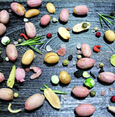 帶膜花生約二三○公克、大蒜一整顆、海鹽適量