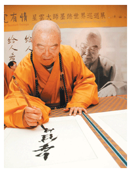 吳伯雄表示,隨著星雲大師墨跡展的世界巡迴展出,更讓他感受到大師在宗教文化界所發揮的深遠力量。他說,大師不只是作家,也是書法家,每年親手所寫的春聯,總要印製百萬幅張貼在家家戶戶門口,可說是集結宗教與藝術於一身。