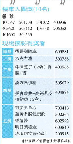 2011素博會5/8摸彩及機車入圍名單