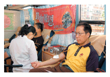 圖說:中度分會委員林頂立(右),每次都率先響應捐血五百CC。人間社記者江峰平攝