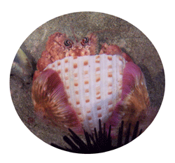 寄居蟹,長的有一點像是蝦子,又有一點像是螃蟹。性格非常的害羞,遇到有人想要跟牠打招呼時,就躲進揹在背上的家中。背上的家則是去看看哪裡有空的貝殼,找到合適的貝殼當屋子,馬上就入厝,新居落成。