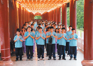 學生李柏毅表示,感謝學校安排,讓他有機會朝山拜佛,一步一拜為家人祈福,想到爸媽勞力工作辛苦賺錢,內心甚感慚愧與激動,不知不覺掉下眼淚,因此在拜佛時更認真、更用心,人有誠心、佛會感應,希望為家人祈求健康平安。