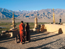 「Don't say Ladakh's beautiful,say it is wonderful.」這是某位旅行者描寫有如被捧在如來掌心而遺世獨立的拉達克之驚歎之語。海拔四千公尺以上,擁有全世界最高的隘口、公路,位於往來中國、阿富汗、巴基斯坦要衝的絲路重鎮,雖然留有藏文顯示其與西藏深厚的淵源,但歸屬印度後,由於邊塞要地的處境顯得處處肅殺。「提克寺」每日隨著東昇的太陽而遠播悠揚的法音,意味著「強巴佛」(彌勒尊佛)繼釋迦牟尼佛後與藏傳佛教同在。