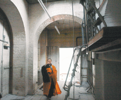 圖說:覺彥法師於聖三一大教堂的鐘樓灑淨。人間社記者楊正妃攝