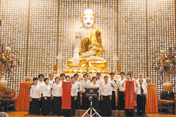 【人間社記者平曜台南報導】南台別院十一日舉辦「二○一一人間音緣歌唱比賽」,逾五百位喜好歌唱、音樂的民眾,一同沉浸於星雲大師寫詞的「人間音緣」歌曲中,共有三十五組個人及團體參賽。國際佛光會中二分會會長蘇孟賢演唱〈晨禱〉,獲得個人組第一名;團體組第一名由南台二會演唱〈師父頌〉獲得。
