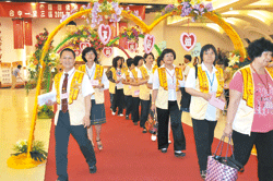 惠中寺舉辦國際佛光會中華總會台中區佛光新人聯誼會,兩百餘位「佛光新人」、佛光幹部歡喜走過「三好門」星光大道。圖/人間社記者張燕玲