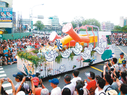 圓福寺、獅子會、地藏庵、城隍廟等團體提供十輛主題花車,吸引民眾爭相合照,沿途數以萬計民眾夾道觀看,將道路擠得水瀉不通,精采的表演,加上現場音樂的鼓舞,沿路笑聲、掌聲不斷。