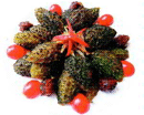 材料:迷你山苦瓜十個、紫蘇梅五粒、小番茄三顆、老薑三片、紅辣椒一根。