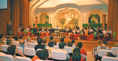 佛光之夜由溫金龍所帶領的人間音緣梵樂團國樂表演揭開序幕,數千海內外佛光人齊聚一堂。人間社記者江峰平攝